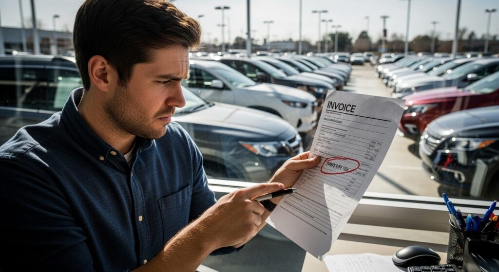 If the dealer tries to add another “delivery fee” or “transportation cost,” refuse to pay it.