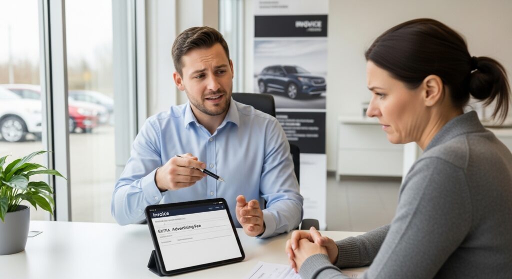 Dealers often claim they need to charge you for “online listings,” “website costs,” or “marketing.”